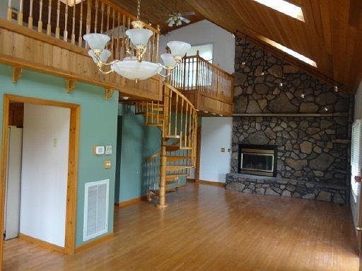 Big price reduction!!! Looking for a uniquely designed house? Upon entry, the xx-large Living Room with Fireplace/DR area span the entire length of the house. The spiral staircase leads to the Master Suite Loft!! The lower level has an extra -large Family Room with a wood burning fireplace and another BR/Bath. Don t overlook this one!