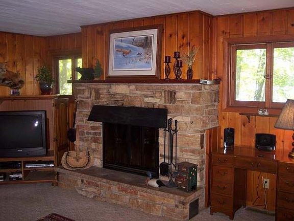 200' of sand frontage on this very level Lake Front property. A lot of living space in this sprawling ranch home. All on one level! Huge garage with work shop and a covered car port, which is attached to the house. No tru traffic