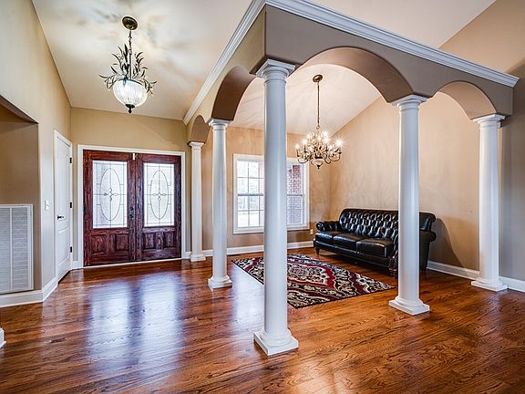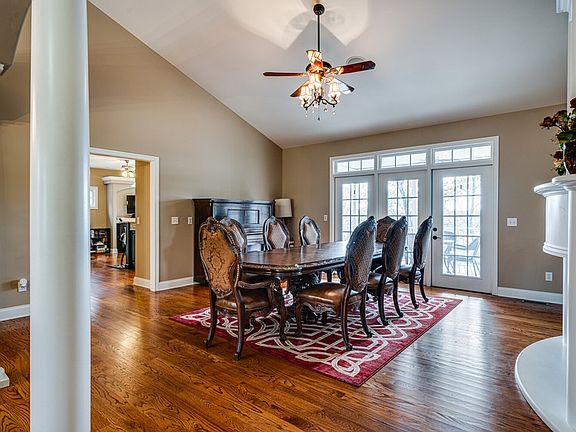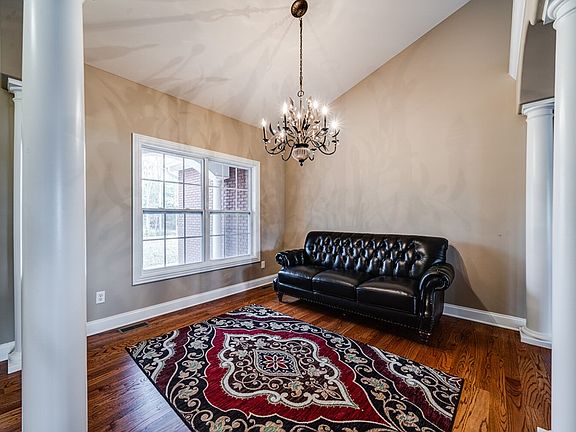 This custom brick home on the Falling Water River boasts cathedral ceilings, oversized rooms, and a breathtaking view! As you enter, you will notice gleaming hardwood floors and a fireplace in the formal dining and living area. The kitchen offers stainless appliances, a double oven, and a microwave built in on a bottom counter to provide plenty of granite counter space. There is additional eat in space in the kitchen as well.The Master Bedroom is something fit for a king. The spacious room boasts a master bath that is built for relaxation including a jetted tub with fireplace, and walk in double shower. As if you didn't already have enough space, the basement is partially finished with additional living space, another bedroom and full bath on beautifully stained concrete floors for easy maintenance, and you will love the attention to detail with the design in the concrete in the living area. PLUS, you have even more space for storage and an exercise room.