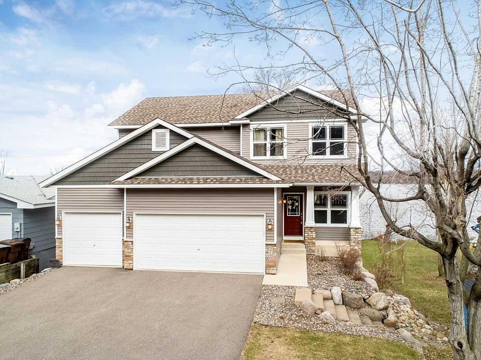 Stunning lake home with 60 feet of lakeshore on peaceful and desired Spring Lake. Perfect for fishing, boating, skiing and swimming this summer! This four bedroom, four bathroom home was built in 2012 by Fieldstone and is excellent for entertaining featuring its large open concept main floor, huge maintenance free deck and location. Imagine seeing the spectacular views of the lake and sunrises that can be seen from the large master bedroom and attached master bath and sunsets that can be seen from the end of the dock. Three bedrooms and a loft are located on the second floor with a spacious guest room in the lower level. Lower level has two walk-outs to the backyard and lake. This home is in a great location, close to neighborhood parks, restaurants, recreational entertainment and has easy access to Highway 13. You donât want to miss out on calling this your new home!