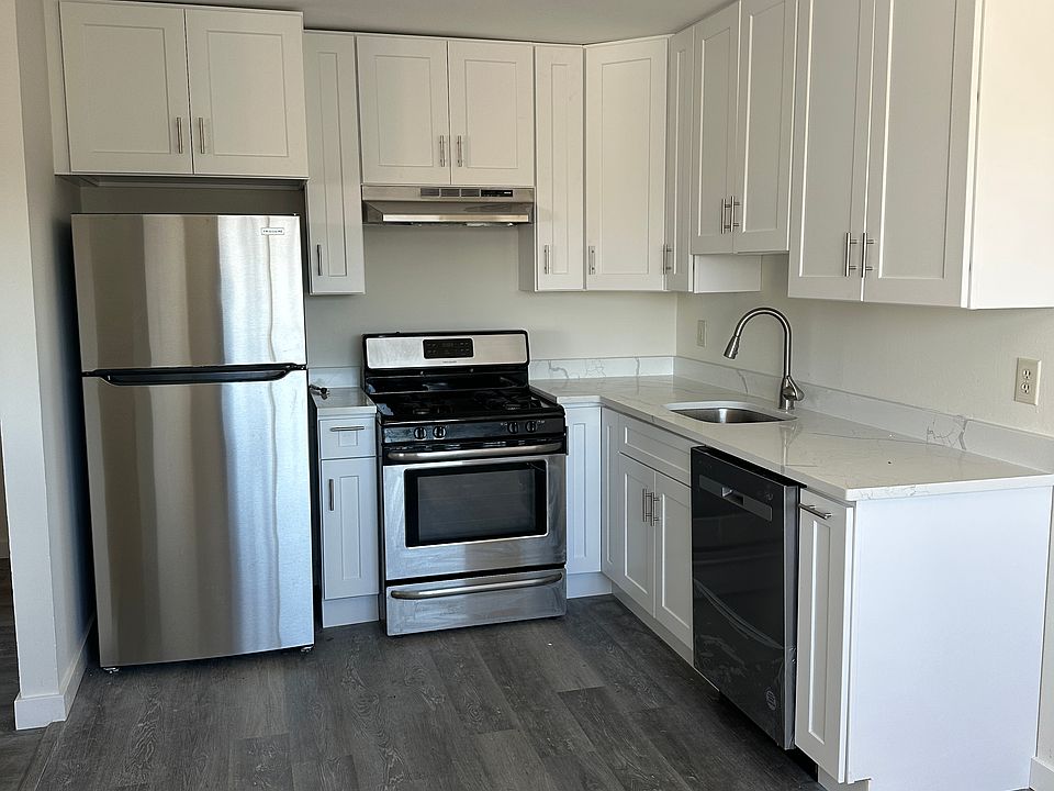 1 Bedroom 1 Bath unit on desirable second floor. Freshly painted, renovated eat-in kitchen with stainless steel appliances, new LVP flooring throughout, and a large bedroom with walk-in closet with sliding glass doors to your own balcony. Conveniently located close to groceries, dining, train station, transportation. Laundry room and pool on-site. Enjoy maintenance free living - the heat and hot water are included as well! Renter responsible for electric, cable, wifi. No smoking or pets allowed. Year lease upon signing