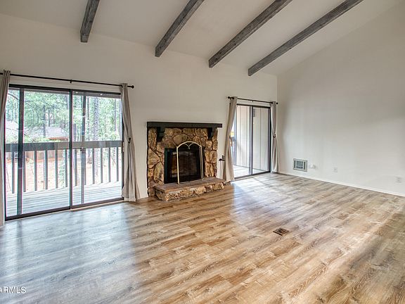 REMODELED in one of the BEST locations in the area! Nestled in the serene landscapes of Pinetop, Arizona, the Pinetop Lakes Country Club Sports Village offers a delightful retreat with its charming 2nd level condos. Imagine waking up to the sight of vaulted ceilings with elegant beams, and the warmth of a rock fireplace greeting you. The double sliding doors open to a covered deck where the whisper of pine trees and the crisp mountain air invite you to relax. Inside, the laminate floors add a touch of rustic elegance, leading you to a modern kitchen complete with a breakfast bar, dining area, and brand-new appliances. The spacious walk-in pantry ensures all your provisions are neatly stored. ....READ MORE... The bedrooms, with their plush new carpets, promise a restful night's sleep, while the bathrooms boast ample counter space and a refreshing tub/shower combo. Outside, adventure awaits with hiking trails that meander through the woods, pickleball courts for a friendly game, and the pristine greens of the Pinetop Lakes Country Club beckoning golf enthusiasts. This is not just a home; it's a gateway to a lifestyle where nature and comfort blend seamlessly. One of the best locations in the complex of Sports Village. Fresh paint and new flooring throughout. New appliances for a fresh look everywhere. The front steps and entry was also recently painted. This home is move in ready - it is clean as a whistle. Imagine living in the White Mountains of Arizona where you have 4 beautiful seasons and where you can breathe in the fresh mountain air and enjoy the 40 lakes and over 600 miles of rivers and streams. In addition to the amazing fishing, this area has one of the most extensive trail systems in the southwest for hiking, biking, horseback riding, quadding and more. Sunrise Ski Resort is also just 40 minutes away with 3 beautiful mountains to ski, snow board or sled. If shopping is your interest, you will love the antique stores and the multitude of arts and craft shows that happen in the summer. The music festivals have something to fit everyone's enjoyment. Do you love to golf? There are 7 amazing golf courses, 3 that are public. The White Mountains, where this home/cabin is the best kept secret of Arizona! Come and explore and enhance your living! Pinetop-Lakeside was also voted 'Best Cabin Region in the U.S"... Embrace the MAGIC!