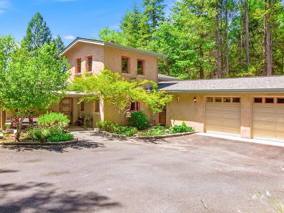 Serene waterfront home on 10 private acres in El Dorado County. This stunning custom home was designed in 2001 with energy efficiency and the highest of quality in mind. The kitchen is truly the heart of this home and equipped with a large butler's pantry, Sub-Zero fridge, propane range with custom hood, built in dry bar, undercounter icemaker, and an Alderwood island with granite counter. The formal living room with lovely views and cathedral ceilings features a beautiful fireplace surrounded by soapstone tiles while the outstanding Tulikivi soapstone stove in the lower level den is a real conversation piece as well as a functional addition to the whole house radiant floor heat. The 2.5 car garage offers workspace with heated floors, surround sound and a central vacuum component for vehicle detailing. Property offers 2 separate parcels totaling 10 acres and includes your own private lake. Fill your cooler and take the path down to the gazebo near the beach and spend a day on the water
