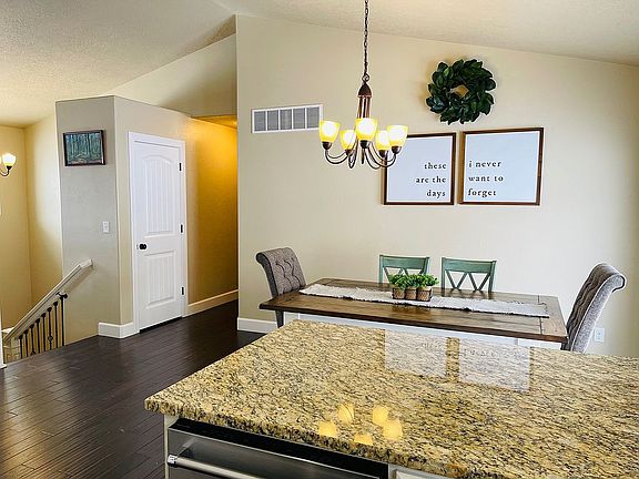 Lots of upgrades in this home. 1,281 sq feet upstairs and 836 downstairs for a total of 2,117. Solid hardwood flooring upstairs, paint grade cabinetry throughout, quartz kitchen sink, stainless steel appliances, 6 foot bathtubs with tile upstairs, huge master closet with 26 feet of hanging space. Garage is 2.5 car which is nice to be able to park your cars and have room for your toys. Garage floor is acid washed concrete and waxed for protection and will shine in the summer. Sprinkler system with mature low maintenance landscaping. All appliances including washer and dryer come with home. Water heater was replaced in 2018. Last year taxes were $1,711. Never had pets or smoking. Great location. Call or text 252-4459.