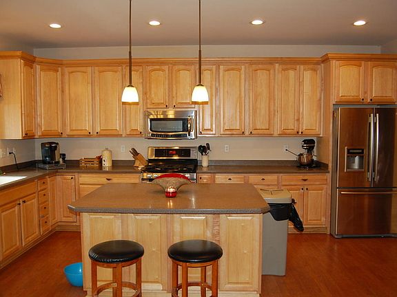 A must see, this traditional 2 story home with Great Room design. An enormous kitchen with maple cabinets including 42'' uppers and solid surface counters including the huge island with breakfast bar. There is also a huge pantry capable of hiding all your baking appliances keeping the counters clear. Also a Formal Dining room, library, and 1/2 bath on main level. All 4 bedrooms are on upper level. Great room design features an open kitchen, dining, and family room with fireplace and TV alcove above. Upstairs is the wonder Owners Suite with in-suite bath and walk-in closet. Also, tray ceilings, jetted tub and separate shower with glass surround and private water closet. Additional 3 bedrooms all of which are good size and have closets with built-in storage treatments. Most windows have up/down blinds with no rope pulls to fumble with. Huge deck in the back yard as well as raised bed planters for gardening. Lots of paving leading to the 3 car garage and you are well on your way home to this property the whole family will enjoy.