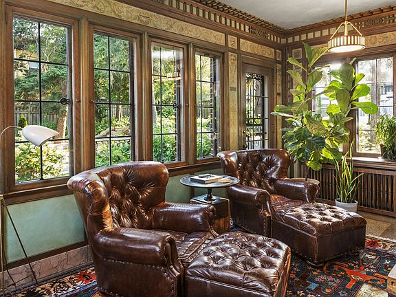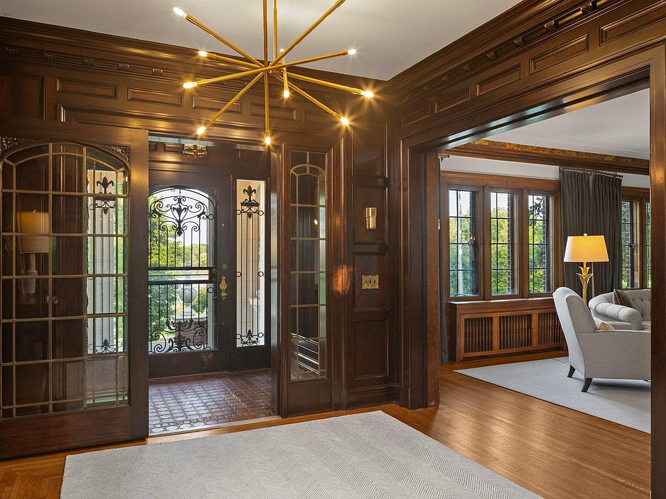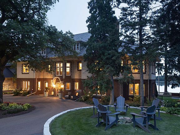 With its commanding hilltop setting, this extraordinary home offers prime skyline and lake views on one of the largest lots (0.7 acre) on the lake, with generous side and rear yards. Entertain in grand public rooms, including the superbly wainscoted foyer with magnificent staircase and access to adjoining formal rooms, including stunning lake facing living room with fireplace and banquet-sized dining room. The terrazzo floored sunroom and ornately tiled breakfast room flank the formal public rooms and share lake views. The main level includes the center island kitchen with heated slate floors and relaxed gathering area, mahogany paneled library/den, ½ bath, and mudroom area. On the 2nd floor, there are 4 en suite bedrooms, including the expansive primary suite with sitting/sun room, updated full bath and generous closet spaces. The lower level features original terrazzo floors in the family room & 5th bedroom, plus bath, flex room & excellent storage. Special features of the property include: carriage house with double garage and open studio space above, 2nd double garage, circular rear drive, and partially finished 3rd floor ready for additional build-out.
