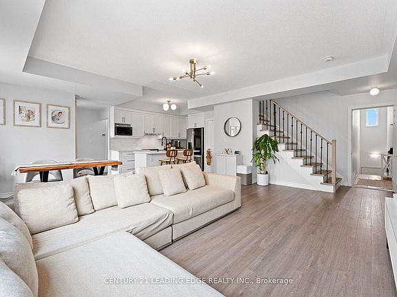 Welcome to Your Dream Home in Duffin Heights!Discover modern living at its finest in this stunning 3-bedroom, 3-bathroom end-unit townhouse, built by the highly regarded Averton Homes in December 2019, and thoughtfully upgraded in 2023 & 2024. Nestled in Pickerings thriving Seaton community, this home offers the perfect fusion of style, comfort, and convenience. Step inside to find 9' ceilings, a sun-filled open-concept layout, and a spacious main floor family room perfect for relaxing or entertaining. The beautifully renovated kitchen boasts quartz countertops, extended cabinetry, pantry, and sleek stainless steel appliances (2023) including fridge, stove, microwave, dishwasher, washer, and dryer. Stylish light fixtures, updated laminate flooring on the 2nd floor, and modernized stairs and railings elevate the homes contemporary feel. Enjoy outdoor BBQ on your oversized corner balconya rare and private retreat. The primary suite features a walk-in closet and a 4-piece ensuite. Convenient features include main floor laundry, a 2-piece powder room, and direct garage access. Ideally located in a family-friendly neighborhood, this home is just minutes from highly ranked Valley View Public School, parks, golf courses, hiking trails, and all major amenities including Costco, No Frills, DaCostas, and more. Commuters will love being close to the Pickering GO Station, with a bus stop at Brock Rd & Rex Heath Dr just steps away. Whether you're starting a family or looking to upgrade to a more modern, low-maintenance lifestyle, this beautiful home checks all the boxes.