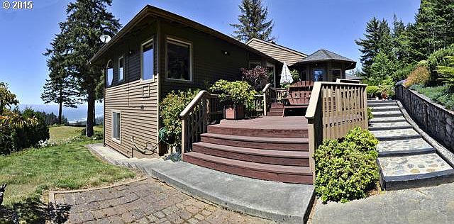 Quality Home with Superb Ocean Views is nestled on 5 acres. Acreage has forested paths and a small creek. Home has vaulted ceilings; large kitchen with island; bright and airy living room with a wall of oceanview windows and a grand fireplace; spacious bedrooms-one with a Murphy Bed; 28 x 28 RV Garage and established landscaping. Home has a wonderful split bedroom design w/ additional guest quarters on the lower level.