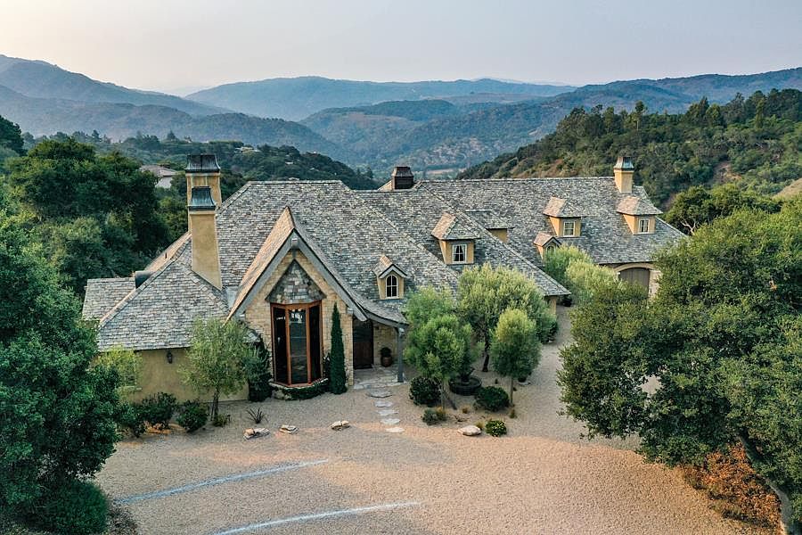Bella Carmel boasts 11.17 Acres of Privacy, Views, Remarkable Craftsmanship and Convenience. Private & Gated, located 6 miles east of Hwy 1 & downtown Carmel. The Great Room features 25 foot vaulted ceilings, distressed beams & massive fireplace - grand, yet scaled for comfortable living. Guests enjoy gathering around the open chefs kitchen with beautiful views & casual dining or a more formal dining option with the sounds of a trickling fountain. Just off the entry, a private office with cathedral like windows, natural light and fireplace makes working from home a dream. The Master Suite features a Carmel stone fireplace, spectacular mountain views, a luxurious infinity tub and lavish walk-in closet. Bella Carmel unfolds for guests & entertaining with five en-suite guest rooms.The outdoor jacuzzi and gardens enjoy unmatched views to the south overlooking the Santa Lucia Preserve, backdropped by beautiful architecture, slate tiled roofs with copper fittings and a mediterranean-flare.