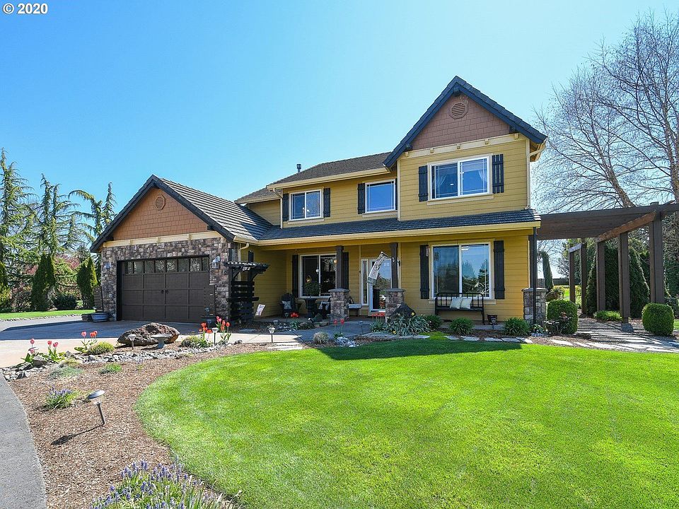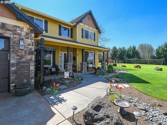 Field of Dreams on 1.27 Acres. Your own baseball field, 2-outdoor firepits, raised garden beds, hot tub! Main floor bonus room w/river rock gas fireplace. Family room with tile floors & gas fireplace. Huge vaulted Dining Room with knotty pine & fireplace. Sitting/Reading room and office! Master suite vaulted with balcony and walk-in closet. RV Parking! Sought after Ridgefield Location!