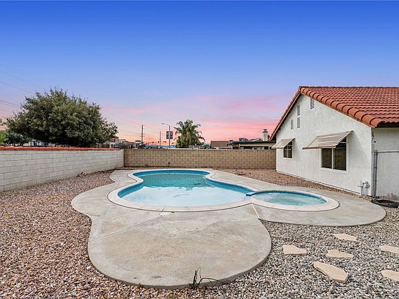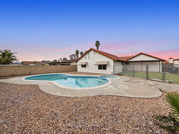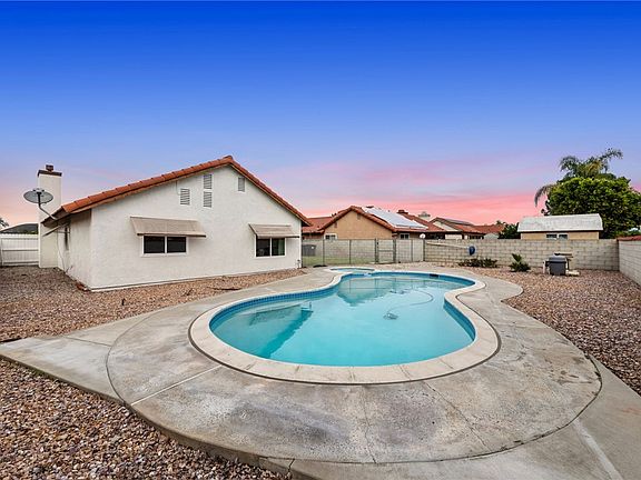 Welcome To This Charming Single-Story Home Nestled In The Serene Neighborhood Of Menifee. Boasting 3 Bedrooms And 1.75 Baths, This Residence Offers An Ideal Blend Of Comfort And Style. Upon Entering, You Are Greeted By Brand New Luxury Vinyl Plank Flooring That Extends Throughout The Home, Creating A Seamless And Inviting Atmosphere. The Spacious Living Room Features Brand New Paint, High Ceilings, A Cozy Fireplace With A Wooden Mantel, Perfect For Relaxing Evenings With Loved Ones. Entire Interior Has Just Been Professionally Painted. The Heart Of The Home Lies In The Beautiful White Kitchen, Complete With Stainless Steel Appliances, Offering Both Functionality And Elegance. Adjacent To The Kitchen, The Dining Room Opens Up To The Backyard Through A Newer Sliding Glass Door, Seamlessly Blending Indoor And Outdoor Living. The Primary Bedroom Is A Tranquil Retreat With Mirrored Wardrobe Doors And A Private Bathroom, Providing A Perfect Sanctuary To Unwind. Two Additional Bedrooms Feature Brand New Plush Carpeting, Ensuring Comfort And Coziness. Step Outside To Discover Your Own Private Oasis, Complete With An In-Ground Pool And Spa, Perfect For Enjoying Sunny California Days. The Backyard Also Boasts A Large Grassy Area, Ideal For Outdoor Activities, All Surrounded By Block Wall Fencing For Privacy And A Pool Fence For Safety . With Newer Dual-Pane Windows, Freshly Painted Interiors And Exteriors, And Drought-Tolerant Landscaping In The Front Yard, This Home Offers Both Aesthetic Appeal And Practicality. Enjoy The Convenience Of A Two-Car Attached Garage, Vertical Blinds, And The Added Bonus Of No HOA Fees And Low Taxes. Situated In A Tranquil Neighborhood With No Neighbors Directly Behind You, This Menifee Gem Offers A Peaceful Retreat While Still Being Close To Shopping, Dining, And Entertainment Options.
