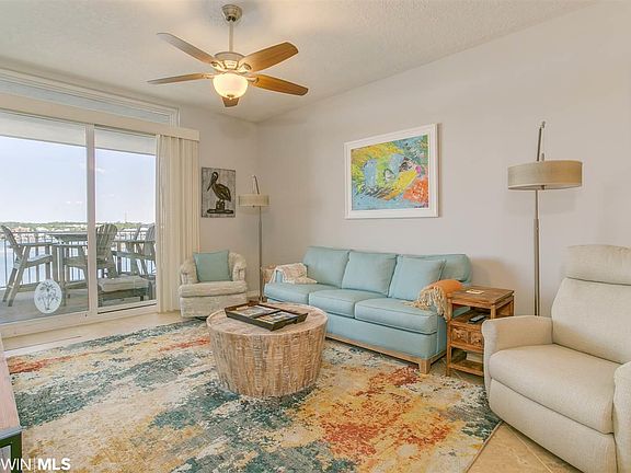 BOAT-LOVER'S PARADISE on COTTON BAYOU with COVERED GARAGE PARKING! The PERFECT location in the building's protected center features an OVERSIZED PRIVATE & SHADY BALCONY with SWEEPING VIEWS of Cotton Bayou and Gilchrist, Bird, & Robinson Islands. Watch the endless parade of BOATS traveling between Marinas, Islands, & Perdido Pass to the Gulf of Mexico. This low-density complex has a UNIQUE indoor pool with easy access to the outdoor pool and lower & upper decks located directly on Cotton Bayou's shore, and includes a hot tub, exercise room, sauna, and steam room. Owners enjoy gathering at fishing docks and BBQ area, as well as several socializing zones overlooking the Gulf on the south side patios. Each unit has its own SECURED indoor covered Storage Closet for coolers, fishing gear, & beach toys. This 3 bed/2 bath condo has been well maintained as a 2nd home without rentals and pride of ownership shows! Tile floors throughout and in Master Bath's Separate Shower, accompanied by a luxurious jetted garden tub. Bright Kitchen with Center Island has updated Stainless Steel appliances and GORGEOUS Granite Countertops. All 3 bedrooms are large with ample closet space for guests, and the living room sofa folds our for more sleeping space. Unit is adjacent to one of two elevator lobbies, above storage units and amenities, and within a short walking distance to local restaurants, shops, & the BEACH! This development has a strong Owners' Association and continues to be a GEM in Orange Beach. Unit will be sold fully furnished with acceptable offer, except for some artwork and minor furnishings reserved by Seller. Square footage & measurements are approximate. Buyer/Buyer's Agent to verify all information deemed important.