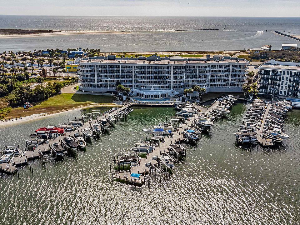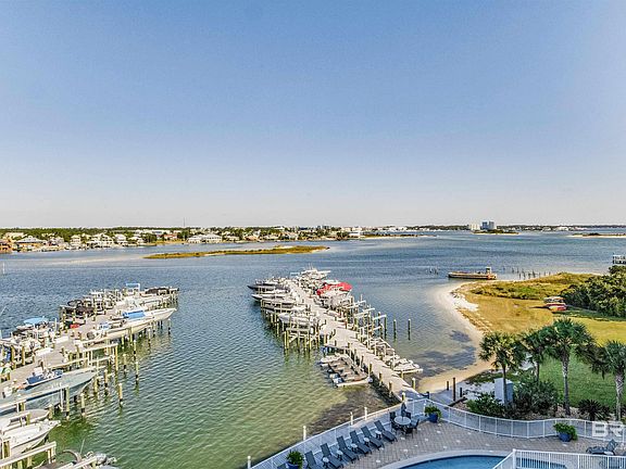 PRIME WATERFRONT LOCATION - SITTING ON THE DOCK OF COTTON BAYOU! Top floor 3-bed & 2-bath condo at Mariner Pass with brilliant views of Perdido Pass & Orange Beach's beloved boater hotspots like Robinson & Bird Island. Superb marina (boat slip #36 with lift conveys), fish cleaning station as well as sandy beach area with green space & kayak storage. Low density complex with less than 60 total units & rental minimum of 30-days. Spacious split bedroom floor plan with tile flooring throughout the open concept living, dining & kitchen area. Thoughtful kitchen layout with pantry, an abundance of granite countertop space, loads of cabinet storage, a kitchen island & breakfast bar. Widespread balcony with expansive views can be accessed through both living area & large primary suite. Enjoy the community's indoor pool, outdoor pool, exercise room, sauna/steam & well-manicured landscaping plus take a quick stroll to public gulf-side beach access, SanRoc Cay, The GULF restaurant, Perdido Beach Resort & so many other options just minutes away by land or water. Assigned parking space #505. COASTAL LIVING wrapped up in one package - BACKWATER BOATING VENTURES & BEAUTIFUL BEACHSIDE BLISS!