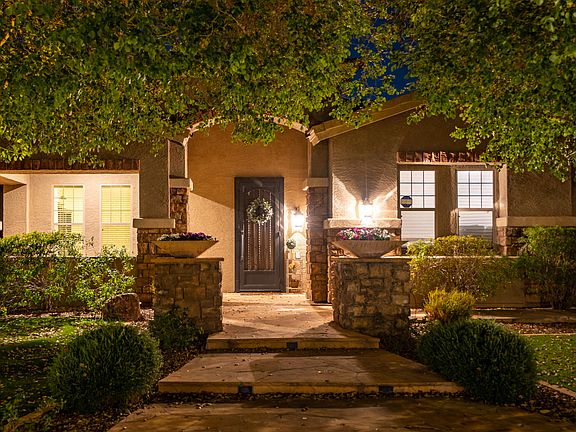 Welcome to this breathtaking model like home that will transport you to a world of unparalleled luxury and comfort. Nestled in a serene and picturesque location, this stunning home boasts a blend of contemporary design and rustic charm. Step inside and be greeted by soaring 10' ceilings, spacious bright & airy floor plan that seamlessly flows from one room to another, providing an ideal space for both intimate gatherings and grand entertaining. All bedrooms are equally impressive, each with their own unique character and charm and walk in closets. The gourmet kitchen is a chef's dream, complete with top-of-the-line appliances, upgraded double bull nose travertine countertops, custom cabinetry including 10' full height cabinets with glass display paneling and bar area all featuring soft close hinges and doors. Upgraded light fixtures throughout and a large center island perfect for meal prep and casual dining. The primary suite is a luxurious oasis, featuring a complete master bathroom remodeled with chevron wood-like tile flowing seamlessly into the closet, free standing claw tub, walk in shower, double vanities with Quartz countertops, mood floor lighting, stunning chandelier, and much more! You can enter through the private exit to the resort-style backyard boasting an ULTIMATE high-tech pool and spa. Featuring travertine surrounds, swim up bar, wi-fi automation to control lights, jets, cleaning system, ramada lighting, waterfalls, and much more! Entertain in the expansive outdoor kitchen and dining area with the wok pot gas fire and gas fire pit.