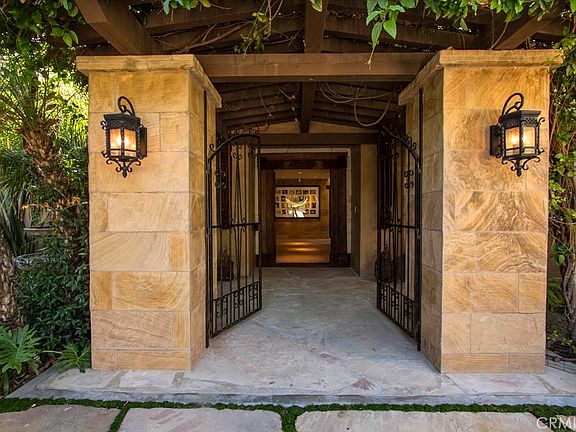 Move-in ready! Ocean View 1 story custom home behind a double-gated entry. Highly upgraded home has 4 bed + 4 bath w/ approximately 3,700 square feet. The vast 1 acre property boasts ocean views, lush landscaping, fruit trees, organic garden, a huge grassy area overlooking the Pacific, & massive stonework surrounding the spa, BBQ center, & party deck w/observation area. Enter onto the stone floors & into the great room w/stone fireplace, built-in book cases, & flat screen TV w/surround sound, all under high wood-beamed ceilings & open to the custom & remodeled cook's kitchen w/professional range, pot filler, Sub Zero professional refrigerator/freezer, stone counters, mosaic tiled backsplash, wine fridge, & center island. Bi-fold doors in the great room invites ideal indoor/outdoor living. The master suite features ocean views, a warm & inviting fireplace w/flat screen TV above, French doors leading to the yard and spa, a large sitting area with built-in desk and bookshelves, and a remodeled master bath with a European-styled enclosed steam shower and bath combination. Let's not forget the custom home theater with surround sound and a lofted viewing lounge. 2 of the bedrooms are presently set up as a music studio & control room but can be easily restored as bedrooms. Stunning!