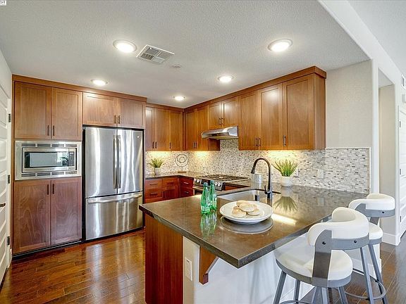Alameda Landing 2 bed 2 bath furnished apartment. 1st floor apartment. Walking distance from shopping, (Target, Safeway, several restaurants within less than a 5 min walk). Easy access to Webster Tube and Hwy 880. Rental period is 1 year. Small pets ok. Common area for kids/pets is close and convenient. Tandem attached parking (2 cars, 1 behind the other). Tesla Level II Universal charger for EVs. This is a new development, built in 2016. Appliances are all stainless. See attached pics. Note: Pics are from the staged real estate listing. Available 5/1/2025. This unit is unfurnished. One year lease with an option for month to month after that. Small pets OK.