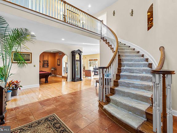 Set on over three acres of picturesque landscaping with wooded areas, this stunning Colonial home showcases a full brick exterior, elegant arched windows, and a grand covered entryway tucked away at the end of a long, private driveway in a peaceful cul-de-sac. The property offers an expansive 5,466 square feet of finished interior spaces, featuring exquisite designs with high-end finishes. Elegant arched doorways, eclectic light fixtures, intricate detailing, and recessed lighting adorn each space, creating an atmosphere of sophistication and charm throughout. Property highlights include a roof installation in 2022. The grand foyer greets you with elegant marble floors and a striking curved staircase, setting the tone for the home's refined style. Rich hardwood floors flow seamlessly through the living room and formal dining room. The dining room offers built-in storage cabinets accented by arched mirrored walls for an added touch of elegance, and the living room opens to a study or sitting room that offers a built-in desk station and additional built-in storage, perfect for a home office or library. The open-concept family room, centered around a cozy wood-burning fireplace, provides a warm and inviting space ideal for entertaining, with convenient access to both a deck and a screened-in porch. Adjacent to the family room, the gourmet eat-in kitchen—remodeled in 2022—serves as a culinary masterpiece, featuring an island with seating illuminated by a trio of crystal-accented chandeliers. The kitchen is equipped with a breakfast bar, professional-grade stainless steel appliances including a 6-burner gas range, and showcases a stunning backsplash paired with Brown Fantasy® marble countertops. The space flows seamlessly into a bright breakfast room with vaulted ceilings and exterior access. Completing the main level is a spacious powder room with an extended vanity and a well-appointed laundry room, ensuring functionality. The expansive owner’s suite offers plush carpeted flooring, a private balcony, and an impressive walk-in closet with custom built-ins for optimal organization. The luxurious ensuite bathroom exudes elegance, featuring marble flooring, a jetted soaking tub, an extended custom double vanity, a separate shower, and a bidet. The upper level is completed by an additional bedroom with dual closets and another full bathroom. The fully finished lower level offers an expansive recreation room centered around a cozy wood-burning fireplace, complete with a built-in wet bar and convenient exterior access. This level also boasts an exercise area with a wall of mirrors, a wine cellar with a capacity for over 200 bottles, two full bathrooms, and two additional bedrooms—one featuring a walk-in closet and the other with dual closets and walk-out access to the patio. The property features an expansive deck running the full length of the home’s back exterior, equipped with a retractable awning for shade and a screened-in porch. On the side, a covered patio offers the perfect spot for an outdoor kitchen, while the large, open backyard provides the ultimate entertainer's paradise. Highlights include a beautiful covered paver patio, an inviting in-ground pool, a cozy outdoor fireplace, a relaxing hot tub, and a fenced playground for added enjoyment. The fenced yard backs to serene, mature trees, creating a tranquil retreat. Cold Saturday offers a rural and private atmosphere with the convenience of nearby amenities. The neighborhood provides residents with the peaceful charm of the countryside while remaining well-connected to commuter routes, parks, shopping centers, local schools, and private schools [Mt. St Joseph, St. Paul, McDonough, Gerschstel] just a short commute away.
