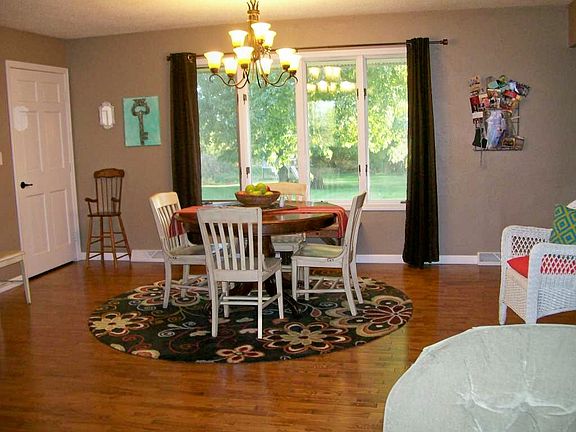Country living! 4 BR, 2 baths, open living and dining room, fireplace, walk out basement, covered back porch. Bar in basement is movable, kitchenette and extra washer/dryer hook up in basement. A bathroom has been plumbed in in the basement. Master bedroom has a walk in closet plus a double closet. Bathrooms have all be updated, all drywall has been refinished. All remodeling in last 2 to 3 years. House painted in 2014. Additional wood furnace. All new entry doors. Barn (22 x 20) has concrete floor. New fruit trees. EJ water plus well system. Outside hydrant on well.