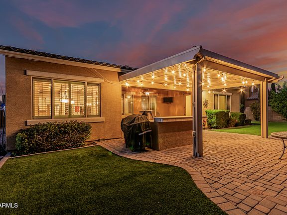 Welcome to Luxury Living in the Gated Community of Lehi Crossing! Step into this beautifully upgraded 4-bedroom, 2.5-bath Taylor Morrison home featuring an open-concept layout perfect for entertaining. The chef's kitchen boasts granite countertops, a full-height backsplash, and stainless steel appliances, all accented by striking faux rough-sawn beams and surround sound in the main living space. Plantation shutters and wood plank tile flooring add style and elegance throughout. Enjoy Arizona living at its best in your private backyard oasis complete with a sparkling pool and water feature, expansive covered patio, built-in BBQ, and low-maintenance turf. The 3-car garage and RV gate offer plenty of space for your vehicles and toys. Located just minutes from Sky Harbor Airport, Tempe Marketplace, the Cubs Spring Training Facility, and with easy access to Scottsdale-this home offers both convenience and comfort in a prime location.