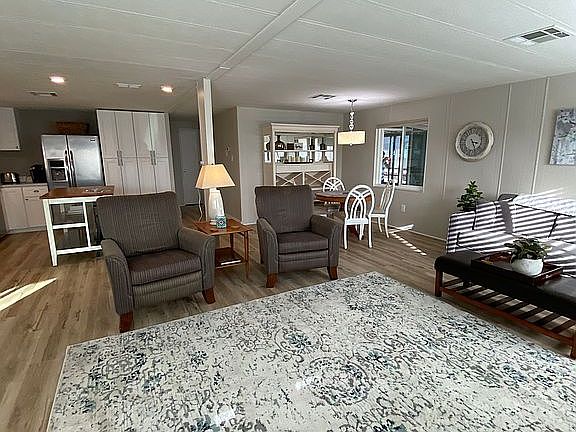 Located in an age restricted community ( one tenant must be at least 55 ), this fully furnished home is available for short term rental. The option to rent unfurnished full time is also possible under different terms. The location of this home is ideal! It's close to shopping, theaters, medical centers, biking & hiking trails and so much more! Conveniently located in NE Mesa, just off the 202 and the 60 provides quick & easy access to any city around the Phoenix area. The Phoenix Sky Harbor International Airport and Mesa Gateway are just a short drive. Located in the Falcon District this home is within walking distance to shopping and several restaurants. The home has just been remodeled with many upgraded features such as a new water filtration/ softener, HVAC system, flooring, 2 walk-in showers, smart tv, dual pane windows, and is beautifully furnished. The master bedroom has a new 100% natural latex split king mattress, a large walk-in closet and a huge beautifully tiled shower. The second bedroom has a queen size bed. The community offers a fabulous gym, pool, hot tub, pickle board, golf course, club house with dining and so much more. The sunsets are beautiful from this location! This home is located in the very desirable Apache Wells community. Golf for non-members is on an availability basis and can be arranged by calling the Golf Shop. Owner pays all utilities based on standard usage (as stated in the lease agreement) cable/internet and HOA. No pets, no smoking and no additional residents without owners written permission. Covered parking and golf cart garage for storage.