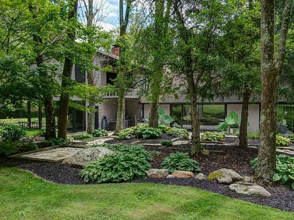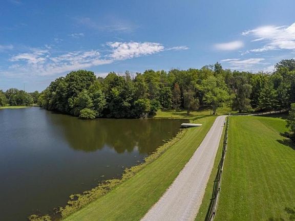 THE GLASS HOUSE! Pristine waterfront property on 6.5 acres featuring 4 BR's, 3.5 BA's, side load garage BOASTING walls of windows w/terrific views of: the pond, stream, nature, manicured gardens, horses and outdoors. The pond is a well stocked, private lake. 3-stall horse barn with tack room and pasture for riding. (backs to the Rocky Fork riding trails!) The abundance of windows captures 360 degree views of the outdoors from every room! The lodge style GR features approx. 550 sq ft of space, 2 solid walls of glass window views, high cathedral ceiling aligned with can lighting and wood beams, stone flr to ceiling fireplace and NEWLY installed Travertine flooring. Open kitchen and eat-in space to the multi-level deck. Views of the POND/GARDENS/HORSES/NATURE!