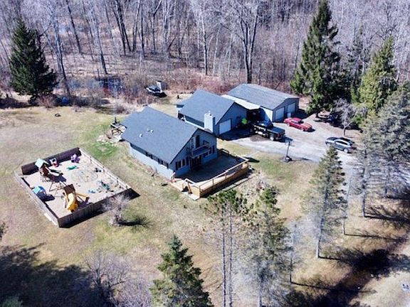 Updated Chalet in a country setting on 2.8 acres and under 5 miles to US 23 and Lake Huron and Tawas City. This Chalet has great curb appeal with large new decks off both the front (16'x32') and back (16'x16') for your outdoor entertaining. Step inside this comfortable home and find an updated open kitchen with loads of storage, cozy fireplace and an additional family room off the back. Main floor living with bedroom and laundry on main floor. Upstairs you will find two large bedrooms with half bath. Many improvements over the past few years that include a new drain field, newer roofs on home and garage, new furnace in 2023, new hot water heater 2024, newer well pump, insulation added, newer septic tank. The garage duals as a workshop & has great upper level storage AND most importantly there is an additional large steel garage 24'x 36' that is heated with concrete floors for hobbies or extra storage. Property allows for a garden and trails to play on and has a large fenced in area of 36' x 24' that is currently in use as a playground. This property has apple trees and an assortment of perennials! Plenty or room to roam here!
