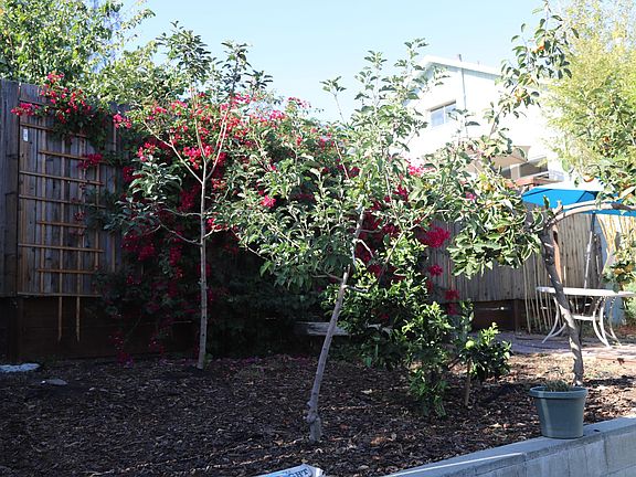 All the apartament floor is tiled, granite counter , stainless steel french doors refrigerator, dishwasher, garbage disposal freshly painted, beautiful private back yard with fruit trees. Very private and quiet Small car garage Owner pays for garbage. Tenanat pays for water and PG&E.