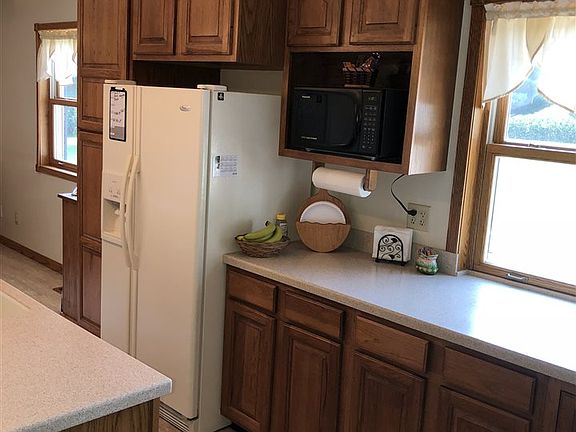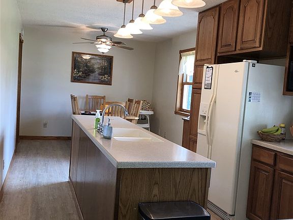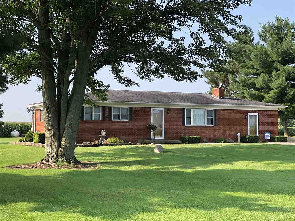 3rd Bedroom possible in this well maintained Brick Ranch. Stone faced gas fireplace in living room, oak panel doors and trim, and hardwood floors under LR carpet. Bathroom remodeled last year with tub sized, all tile, walk-in shower and new flooring in Kitchen, dining and Bath. Pet & Smoke free interior. Efficient Dual Pane, double hung tilt in replacement windows with real wood oak interior, and vinyl exterior. All this with a private country setting on approx .85 Acres and 2 finished Pole Buildings, both with finished interiors, heavily insulated, overhead furnace in each, plumbed air lines and epoxy coated concrete floors, 400A electric service on separate meter from home, hard wired internet from house, Cell booster antennae, Overhead garage doors. 40 x 48 Shop includes built-in cabinets and work surfaces along with storage racks. 23 x 36 garage attached to front of shop also with shelving and electric door openers. Also 8 x 30 canopy on garage with kennel and access to interior shelter area in garage and an invisible fence system. Concrete drives and rear patio.