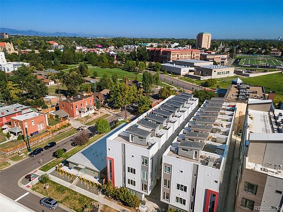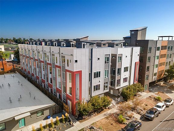 City living in Jefferson Park, this gorgeous multi-level townhome has it all. This end unit offers so much light and vibrancy, and the rooftop patio is one of the best in town with 180 degree views - show stopping city AND mountain views! This townhome boasts high end finishes throughout, offering simplicity of modern lines for the lifestyle you crave. Vaulted 25 foot ceilings and floor-to-ceiling windows throughout living spaces make this home live much larger than it's square footage. Luxury remote operated window treatments so you can let in as much or as little of the outside world as you choose. Attached two car garage eliminates the need to search for street parking as well avoiding the elements when getting in and out of car. This location is so, so walkable! LoHi, Platte River, Sloan's Lake and of course downtown. The city's best dining, breweries, shopping - it's all right there. REI, Cherry Creek bike path, Meow Wolf, Ball Arena and Mile High Stadium ... everything the city has to offer is at your fingertips. While property does not have a formal HOA, there is a party wall agreement with other adjoining townhomes in which owners have agreed to cooperatively share monthly costs for landscape and snow removal, etc. This amount is variable and changes month to month. Seller is happy to provide last several months' statements showing charges but the average is around $140/month. This party wall agreement helps the building grounds stay manicured and modern, clean and upkept. Don't miss your chance to own this special property, book your showing today!