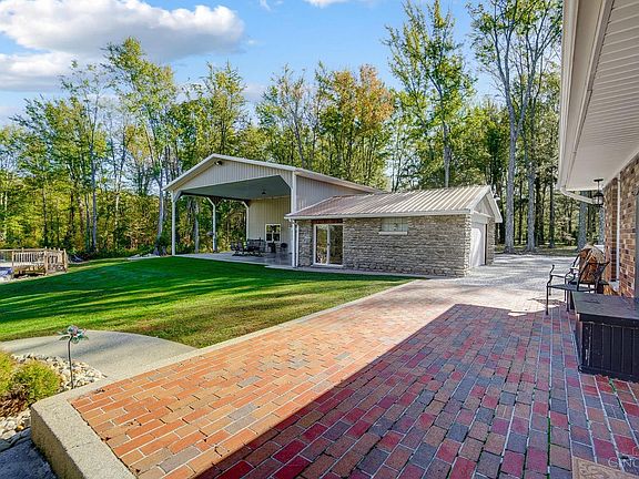 Welcome to this stunning property nestled in natures' beauty. This home is offering 3 bedrooms and 2 full bathrooms situated on almost 2 acres. House is fully insulated with 4' insulation in the attic as well as filled in to the walls (lifetime warranty). Outside is perfect for entertaining with above ground pool, new pool deck, and 2 patio areas and 5+ garage spaces (16 ft doors perfect for boats and RVs)! Less than 4 years old 40X40 Pole Barn with 220v service and fully insulated walls, New HVAC, refinished playset, pool 2 years old, and new gutter guards. Do not miss your opportunity to make this house yours! Western Brown Schools.