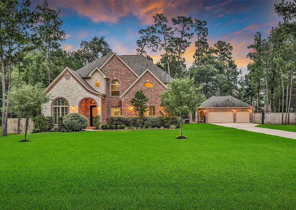 Beautifully upgraded and meticulously maintained Benders Landing estate situated on a full 1 acre lot! Step through the wrought iron door into travertine and wood laced floors. 5 bedrooms (2 Down) with Soaring 20' ceilings in the family room and entry, fire place, and large windows providing the perfect natural light overlooking the resort style pool and waterfall! Gourmet kitchen with large island, breakfast bar, granite countertops, wine rack, 5 burner stove, double convection ovens, butler's pantry, pot filler, coffee bar, and abundant storage. Spacious formal dining with gorgeous trim work. Executive study with luxurious wood, plantation shutters, and built in book shelves. 3 bedrooms and 2 full baths with game room and media room up. Oversized 3 car garage! Fully fenced backyard/patio with show stopping pool! 50,000 gallon free form remote control heated pool with 22 tons of moss rock waterfalls, grotto, tanning shelf, underwater benches, fire ring and led lighting.