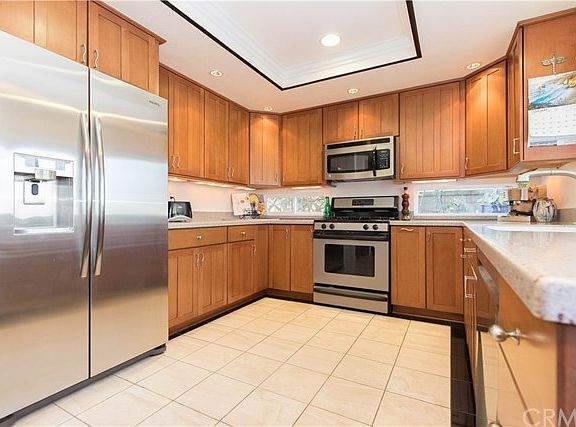 Pristine and private 4 bedroom home with open floorplan and cathedral ceiling. Oversized 6,300 sf private flat lot Located in the South Galicia tract near the top of the street on a pride of ownership single loaded street. Updated kitchen with cherry wood cabinets, granite like hard surface kitchen counters, coffered kitchen ceiling, additional ceiling lights and stainless steel appliances. Kitchen opens to an enclosed breakfast nook and a large family room with a brick fireplace. Warm earthtone decor with wood colored flooring lends serene charm to this home. Entire back of home overlooks the bright and sunny back yard. Oversized master suite with a luxurious master bath and a large walk in closet. Dual paned windows and sliding doors throughout, covered patio and master bedroom balcony. Updated central air and forced air heating in 2010. Spacious storage area added in the attic with stairs. Storage added in the garage with overhead racks. Huge storage in the attic with a ladder. Two wide side yards with two Rubbermaid storage sheds. Both side yards could be used as patios. Right side is exceptionally wide. 400 sqft storage attic. Short walk to a very large greenbelt. Lake Mission Viejo. Additional description in supplement located below the front map