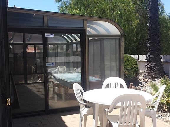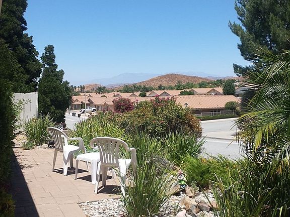 Welcome home to this cozy 2 bed 2 full bath single level home in the Menifee senior area of Hermosa. This elevated corner lot has beautiful views of the hills and surrounding neighborhood. The outside features a back and side yard patio to sit and relax and enjoy those summer nights. Also included is a fully enclosed sunroom to encounter outdoor living from the inside. Once entering the front door you will see a spacious living and dining area for entertaining. The kitchen offers plenty of cabinets with a gas stove, dishwasher, microwave, breakfast nook, and garden window that look's out to the nicely landscaped yard. The master suite has its own bath, walk in closet and sliding door that leads outside to the sunroom. The convenient indoor laundry room is right off the hallway that leads out into a double car garage. Don't wait. Make an appointment to see this gem today before it's gone!
