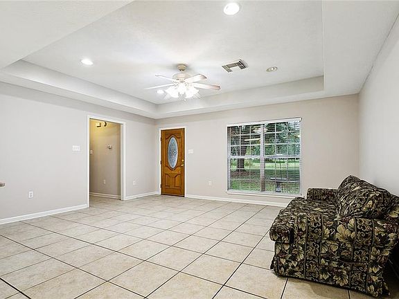 PEACE & SERENITY! Enjoy the sounds and beauty of nature with this amazing home sitting on 1 acre surrounded by century old gorgeous oaks, great for entertaining with an open floor plan, no carpet, tile floors throughout, living room with a tray ceiling overlooks the front yard and is open to the kitchen and breakfast areas, kitchen cabinets just repainted, corian countertops with breakfast bar, pantry, very spacious primary and second bedrooms with a tray ceiling and an abundance of closet space, window blinds, energy efficient and hardy plank exterior, entire house just repainted inside and out. Must see to appreciate all this beautiful home has to offer!