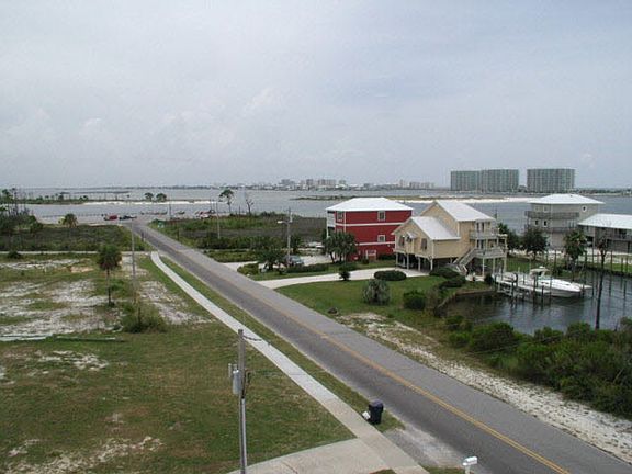 Deep Water, Waterfront Lot located on a Peninsula on Marina Road, Located on Terry Cove with views of Robertson's Island and Ono Island to the East, Alabama Point Bridge, the Jetties and the Gulf view to the South, and Cotton Bayou to the Southwest. The highest elevation waterfront lot on Marina Road featuring white sand beach.