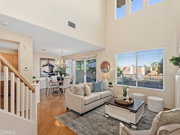 Welcome to luxury living in this impeccable 3 bedroom, 2.5 bath townhome, situated in the much-desired gated community of Village Niguel Gardens. Approach your new home through the lovely front walkway with refreshing touches of nature. As you step inside, you'll be greeted by vaulted ceilings, elegant hardwood flooring, and recessed lighting that illuminates the open living space. Cozy up by the fireplace in the inviting family room, adorned with picture windows that frame stunning views of the surrounding landscape. Downstairs, you'll find a convenient guest bath with a pedestal sink, perfect for visitors. The spacious kitchen is a chef's dream, featuring a breakfast bar, ample cabinets for storage, a new sensor kitchen faucet, and direct access to the 2-car garage with built-in cabinets and workspace. Dining Room is right off the kitchen and features a slider glass door so that you can step outside to your large private yard. Whether you’re savoring your morning coffee or basking in the evening breeze, this lush oasis provides the perfect backdrop for your daily moments of tranquility. Enjoy the mature lemon and orange trees, surrounding green views, and privacy. Upstairs, escape to the spacious owner's suite with views, a large bathroom complete with dual sinks, a soaking tub, a separate shower, and a generously sized walk-in closet. The hallway landing and linen cupboards offer additional storage and organization space. Two additional bedrooms, both with ceiling fans, provide comfortable accommodations for family or guests, along with a secondary hall bath for added convenience. The Community offers 2 pools, 2 spas, tennis courts, and a large park area. Short distance to the Laguna Niguel Regional Park and Lake. Short distance to Target, Shopping, and Dining. Enjoy the epitome of comfort, convenience, and style in this stunning townhome retreat.