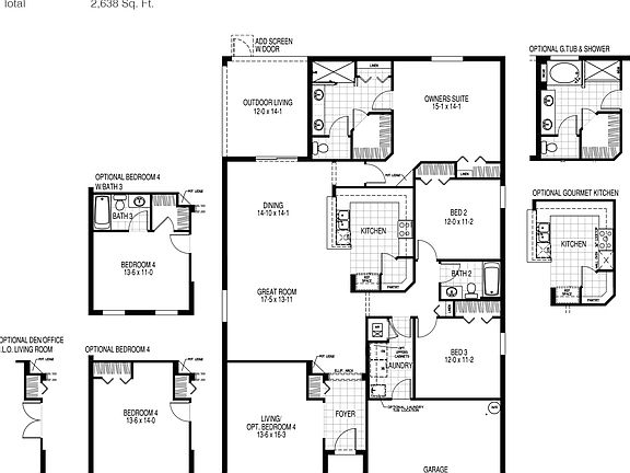 The BRIGHTON model features 3 bedrooms with a layout to accommodate an optional 4th bedroom! Upon entry, this spacious home invites you into an ample foyer with a view of the living room (or optional 4th bedroom). You then walk into the expansive open space that encompasses the great room, dining room and kitchen. Off the kitchen, you will find the separate laundry room with entry into the garage, as well as access to bedrooms 2 and 3. These bedrooms share a full bathroom. On the other side of the dining room, you will find the owner's retreat with an en suite bathroom that is complete with his and her sinks, a linen closet, private water closet and walk-in closet. This plan allows for an optional 4th bedroom with a 3rd bathroom, as well as an optional gourmet kitchen. The dream of a new home awaits!