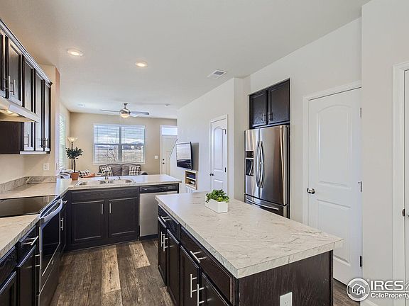 Charming, bright, and well-loved 2-bedroom paired home provides an open concept living space within a community offering walking trails, pickleball and basketball courts, park, community garden, and two dog parks. Opportunity to purchase membership access to outdoor swimming pool and fitness center as well. Enjoy the amazing Colorado weather and magnificent front range views while sitting on your front porch. You will also love unwinding in the additional private outdoor space in the back. Each bedroom has its own en suite bathroom with a powder room on the main level for guests. Laundry located upstairs with easy access to bedrooms. Convenient 1-car detached garage with ample room for storage with a concrete parking space next to the alley loaded garage. Great, growing location in Berthoud off Hwy 287 in close proximity to Town of Berthoud amenities and easy commute to Loveland, Longmont, Fort Collins, and I-25. This one will go fast - don't miss out!