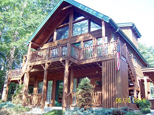 Amazing location in Wears Valley. Lots of decking to enjoy Cove Mountain. This cabin was built with outstanding craftmanship boasting hand hewn beams in the cathedral ceiling, stacked stone fireplace, custom built kitchen cabinets, brick flooring in the kitchen, Master Suite boasts a hand hewn beamed ceiling with walk in closet. Double windows lend the full glass wall to the park like setting and expansive decking. Mature trees, manicured landscaping w/ arbor, fountains, picnic area and irrigation system. Carport and 18x16 workshop/storage shed.