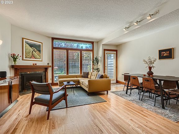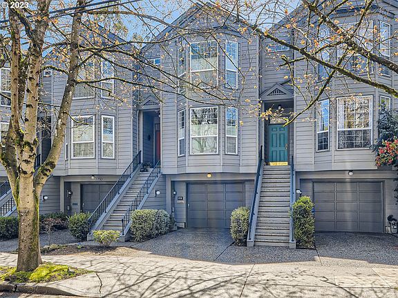 Stunning NW rowhouse with fenced yard & 2-level deck. Remodeled gourmet kitchen & bathrooms, new interior paint, high ceilings, gas fireplace, and natural light throughout. Two 2nd level vaulted bedroom suites, luxury vinyl flooring upstairs, and refinished hardwood on the main. Features energy-efficient AC/furnace, Milgard windows, Hunter Douglas shades, and additional flex room for office/TV on main. Extra deep tandem garage with plenty of storage. Retractable awning, and reflective sunshades to keep home cool and enjoy outdoors on warm summer nights. Southern-facing yard perfect for gardening. Nestled on a quiet tree-lined street near Forest Park, restaurants, library, French bakery, and shopping on NW 23rd. [Home Energy Score = 8. HES Report at https://rpt.greenbuildingregistry.com/hes/OR10212969]