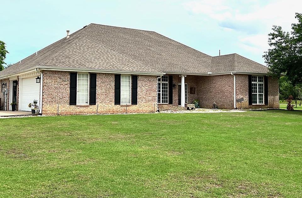 You have to see the inside of this beautiful majestic home to feel the quality of the remodel only 2 years old. Interior walls were removed to open up the floor plan. Custom designed kitchen with quartz counter tops, 10 ft bar all new appliances, kitchen cabinets with soft close drawers and doors. Spice rack pull out drawer, toaster electric drawer and all the extras only found in a custom designed kitchen. Breakfast/dining area in kitchen .New lighting and flooring throughout . 3 new bathrooms with onyx counter tops and shower surrounds. Split bedroom arrangement with 3 bedrooms and 2 baths on the east side of the house all with walk-in closets. Owners retreat has huge bedroom and gorgeous bath with heated floors on the west side of the house. Walk-in closet, 9 ft huge shower, heated floors, double sinks and vanity area. Open floor plan and high ceilings gives such a spacious feeling. 3 car garage. Engineered hardwood floors with ceramic floors in baths. Front family area could also be a large formal dining room. Expand you living and relaxing space to the outdoors. Sellers added a 513 sq ft covered patio on the back of the house with an additional 741 sq that is uncovered. All this on just under 2 acres. HOA are $150.00 annually.