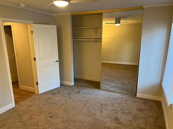 Come live in this beautiful renovated 1BR/1BA apartment. It has been FULLY RENOVATED with a completely new bathroom, new kitchen cabinets and counters, fixtures, lighting, paint job, new flooring, doors, carpet, blinds and crown molding. A new refrigerator, microwave hood and air conditioner unit were installed as well. One covered parking spot and small storage area off patio. Situated in the Station West Condominium complex, the unit is in a quiet neighborly cluster with a pool. Community amenities include: a fitness center, bike storage, game room and laundry facilities. Barbecue areas with picnic tables are also available. Finally, walk to the Pleasant Hill BART station, the Iron Horse Trail or Walden Park. Credit check and move-out cleaning fees will apply. Owner pays garbage, sewer and water. No smoking or pets. One covered parking spot. Community laundry facilities. Tenant pays utilities, move-out cleaning fee, credit check, and key deposit. Minimum lease term: 1 year.