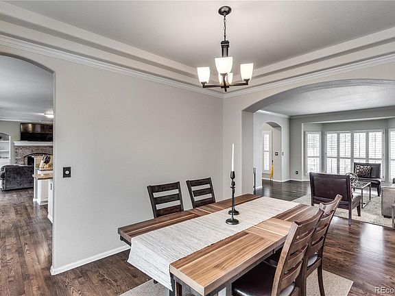 Nestled below Green Mountain in the Estates at Mountain View Terrace is this stately 5 bedroom home on a quiet culdesac. You will be greeted by a curved staircase with iron balusters and all new hardwood floors. Warm & inviting finishes include white cabinets and trim, grey wall paint, new lighting fixtures, and oil rubbed bronze hardware. The open kitchen features stainless steel appliances, slab granite counters, bar area, an island, and a walk-in pantry. Breakfast nook off the kitchen. The kitchen opens to a comfy great room complete with a brick fireplace and built-in shelving. Crown molding and plantation shutters give this home an elegant touch. The main floor also includes formal dining, a living room, main floor bedroom (or study), full bathroom, and laundry room. The perfect 2-Story floorplan has 4 bedrooms on the upper floor, including a large master bedroom with a walk-in closet and an en-suite bath. Plush patterned carpet and updated designer tile throughout. The unfinished basement adds 1,550 sqft - finish to your spec or use for storage. Large 3 car garage w/ lots of storage. The private backyard has mature trees, lawn, and a deck with a pergola for those warm summer days. Surrounded by Green Mtn, Bear Creek State Park, Red Rocks Park, golf courses and trails - and just a short commute to Denver.