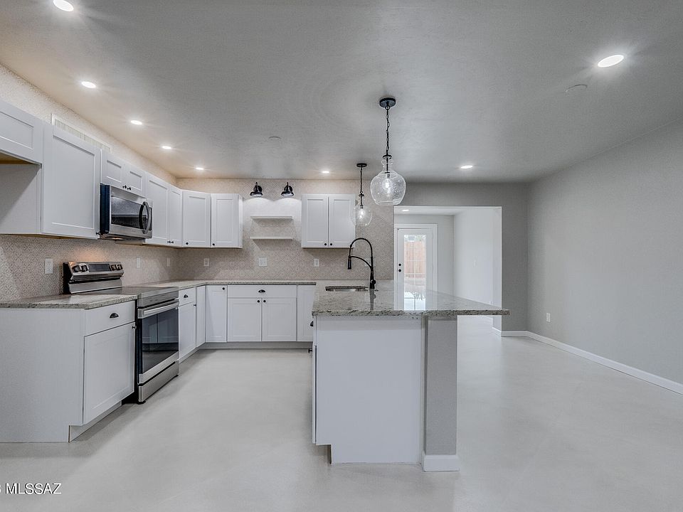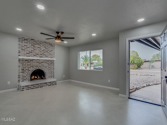 You are about to enter one of the most beautiful homes on the market in its price range. Not a normal flip! New resurfaced pool and pool equipment, new windows, new AC and that is just for starters. This is a ''WOW'' house the minute you walk in the door. Custom concrete floors, all new gourmet kitchen with granite counter tops, new SS appliances and modern upscale lighting. The brick fireplace adds character and charm to create a cozy yet elegant and comfortable home. The spa-like bathrooms are completely remodeled with custom tile surrounds and all new fixtures. Large lot with sparkling pool and grass area. New carpet and fresh paint inside and out. Seller is a licensed real estate agent in Arizona.