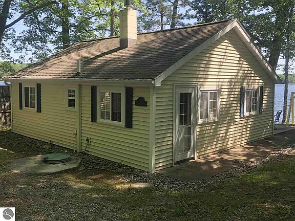 RIFLE LAKE WATERFRONT! 93 feet of sandy-bottomed frontage and a park-like setting come with this 2 bedroom 1 bath cute and cozy cottage / home. Knotty pine throughout, granite tile in the kitchen, and a recently remodeled bathroom. Engineered septic, new well pump, and new roof with ice shield installed in 2002. Spectacular views of 183 acre all sports Rifle Lake and sunrises!