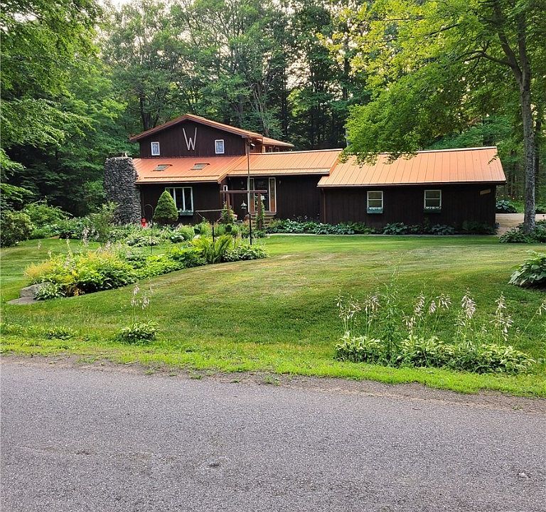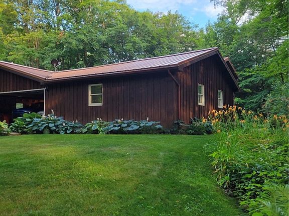 Words and pictures cannot describe this Wyoming County hidden Gem!! This custom built Contemporary is nestled on over 20+ acres of woods and open areas. Relax and enjoy in this secluded country estate that includes a 3 bedroom 2.5 bath well thought out designed home. Spacious kitchen with custom cabinetry, Quartz counters, center island & breakfast nook. Step down into the great room area that features a cozy living room with stone wood burning fireplace, built-in book cases/bench & skylights. Enjoy your family get togethers in the large formal dining room that opens to the huge reflection area. Enter this beautiful home through the large front foyer complete with slate floors. Convenient 1st floor laundry/mudroom & half bath. Sit and take in the panoramic views in the 10'x25' rear enclosed porch that steps down to your private patio with stamp Crete. Large master bedroom with your own private balcony overlooking the rear yard. Addl. 480 sq.ft. in the part.fin basement w/family rm/office. Generac generator backup system. And for your toys, there is a 30'x40' pole barn w/electric on top of the 30'x60' attached car garage.
