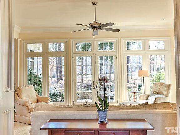 Golf course home in Walker Falls in Governors Club. Filled with natural sun light, this quality, custom home has been lovingly maintained. Exceptional kitchen with open architecture.Living Rm w/fireplace & spectacular serene views.Spacious screened porch allows you to integrate w/the sounds of birds, the sight of long range views and the warmth of the wood burning fireplace for cozy Southern evenings. Casual den w/fireplace and surround sound. Instant hot water throughout. Close to UNC,RTP,RDU and Duke.