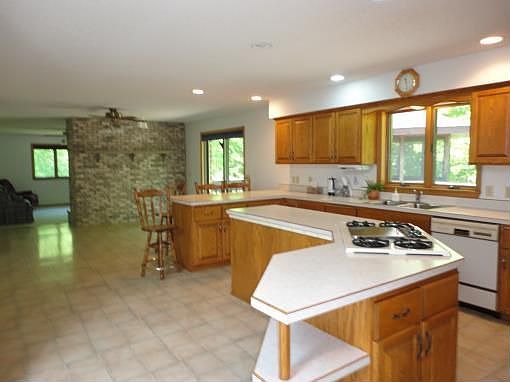 This Minnesota hobby farm has 120 acres of woods & pastures. The property has about a mile of road frontage along highway 13. A large deck with a gazebo is off the back of the home. If you like to hunt, you will for sure enjoy the garage/hunting shack the previous owners set up in the detached garage. And there have been plenty of deer taken on this acreage. The home is a ranch style home with brick and wood exterior. As you enter you will notice how inviting the entrance feels with a skylight above and a nice storage seat and a large coat closet. With double ovens, center island, oak cabinets and a nice breakfast bar, there is no doubt you will enjoy entertaining in this kitchen. It's very open and bright too. Just a few steps from the kitchen you will find a sunken living room with a very nice bay window that allows tons of natural light to enter the home. There is also a gorgeous brick fireplace in the living room complete with a built in wood storage area.Throughout the home are solid core 6 panel doors. The two bedrooms on the main level are nice sized rooms with double closets. The bathroom on the main floor has a jetted tub and a large vanity. To make day to day work a little easier the laundry area is on the main floor along with a nice storage closet.Downstairs is a full apartment complete with a kitchen, dining room, family room, and a 3/4 bathroom. There is a room that has been used as a bedroom, however because there is not an egress window in that room, we cannot call it a bedroom. Completing the lower level is a giant storage room, and utility room. You can walkout to a nice aggregate patio from this level. This hobby farm wouldn't be complete without a barn and this barn is spectacular 58 x 44 with 5 dutch doors, giant loft, 12 x 12 split sliding door and 12 x 10 auto opening door. The craftsmanship is obvious when you enter this building. There is a matching 14 x 18 building that houses the wood boiler with enough space for wood storage too.Summers will be fun tending to the garden, the garden area has an eclectic fence around it to keep the critters out. The property is nicely landscaped with a few built in flower beds.