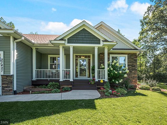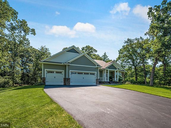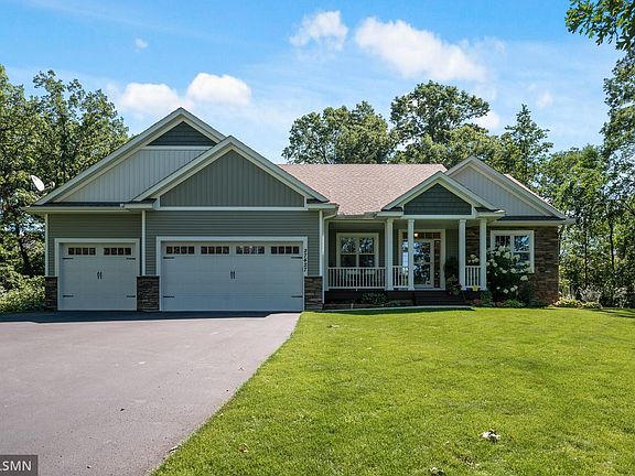 Welcome to this beautifully custom designed home on a private corner lot and just over 3 acres! Pulling up the driveway gives you a very welcoming feeling as you see the mature trees lining the driveway and the well manicured landscaping. As you enter the home, through the cozy front porch you will notice the views out through the sprawling windows to the private backyard. Main level living at it's finest, includes an open layout featuring a large kitchen with plenty of cabinet space and granite counters, butlers pantry/laundry room, a living/dining room w/stone gas fireplace, master suite complete with walk in closet, separate tub & shower, an oversized mud room off the garage and 1/2 bath. Lower level has 2 beds, 3/4 bath and a great space for entertaining in the expansive family room that also has a rough in for another gas fireplace. Outside is another great opportunity for entertaining on the back patio, side deck, or front porch. The pictures don't lie!