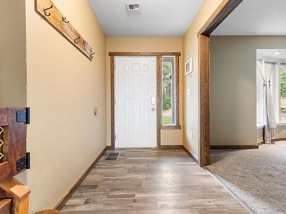 Discover your dream home in this spacious 4 bedroom 2.5 bathroom haven set in the trees on just over 4 acres overlooking the city of Hot Springs. This property offers a unique blend of comfort, convenience, privacy, and breathtaking scenery all while being just a short drive to town. The upper level the primary bedroom serves as a retreat with a private deck to enjoy the stunning views, and a garden soaking tub. There are also 2 attic areas for storage and a loft area that is the perfect non bedroom space you've been looking for! The main level features an open kitchen and dining area that walks out to the back deck. The high ceilings, skylights, and wood burning stove provide that Black Hills feel you want all while having the modern touches you need. There is also another bonus room above the garage with even more attic storage! The exterior has a carport at the top of the drive; near the home you will find an additional shed with lean-to for your wood storage.